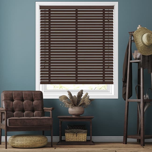 Crafted with rich walnut and coffee wood, this blind offers timeless elegance and natural warmth. Its 50mm slats allow precise light control, blending style and functionality seamlessly in any space.