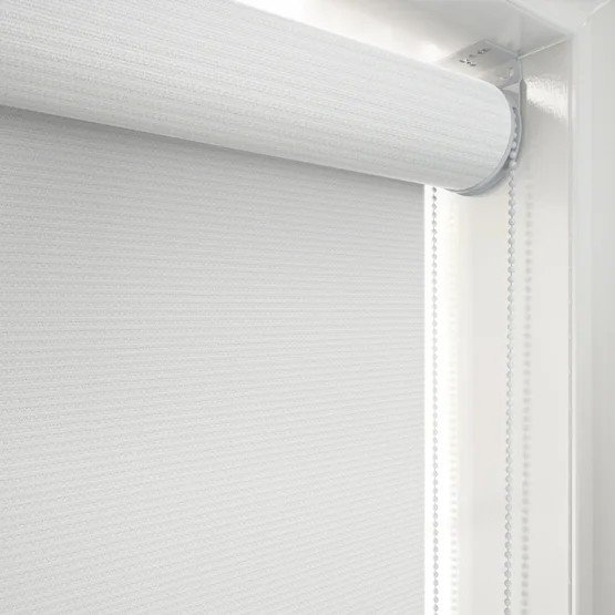 Designed for modern interiors, this elegant window covering enhances privacy and light control, featuring the AquaLuxe White Roll-Up Blind for a clean, durable, moisture-resistant, and stylish home finish appeal daily.