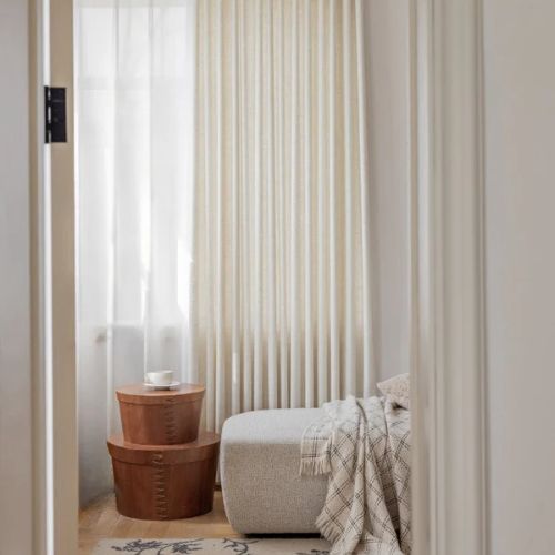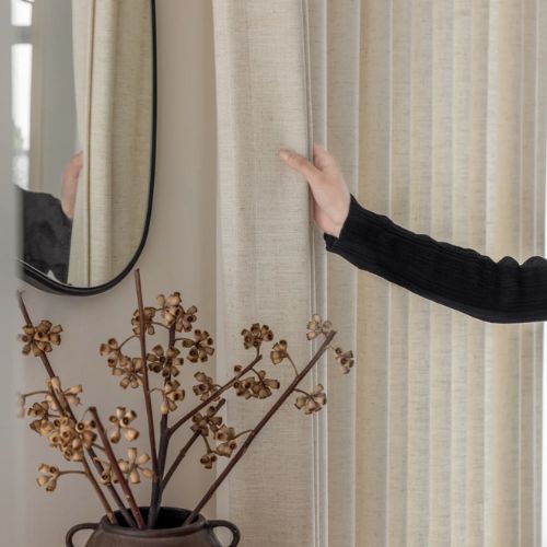 Woven from a thoughtfully selected mix of flax, viscose, and polyester, our linen curtains offer the refined texture of natural linen with added durability. The enhanced fiber structure helps retain shape, resist stretching, and preserve their elegant drape over time.